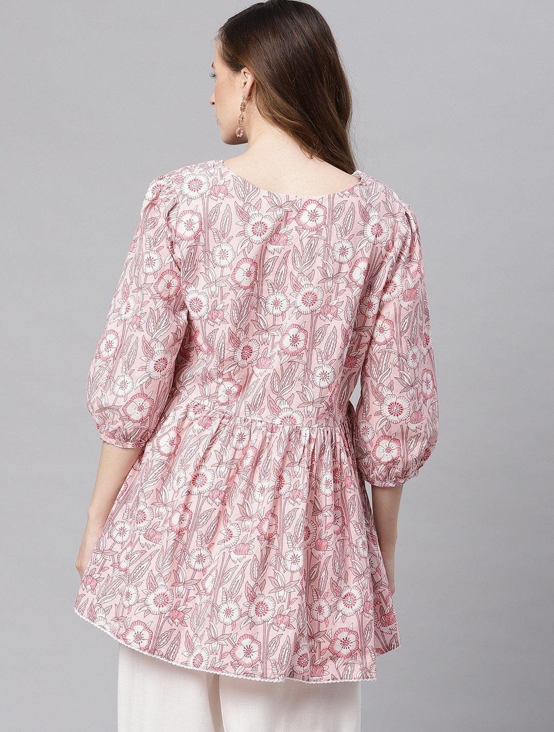 This peplum top is crafted in cotton.it feature a wide V neck neckline, three fourth Puff sleeves, Front Button. croatia lace Placed on Neck and bottom of top. A pair of white tapered pants platform heels and a chic box Clutch will have you date night ready in no time!