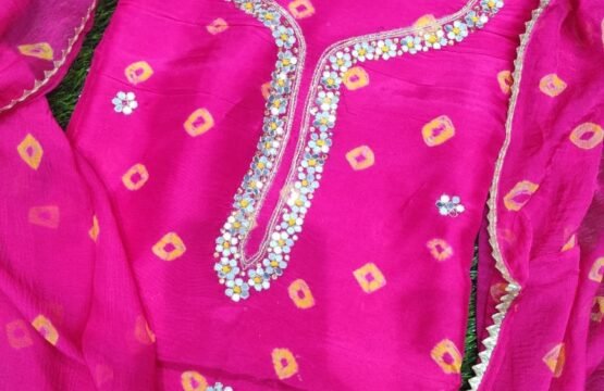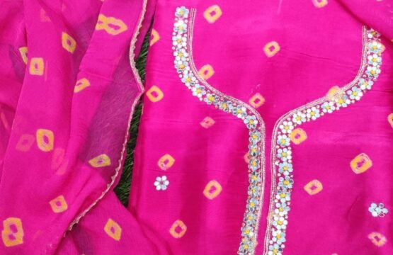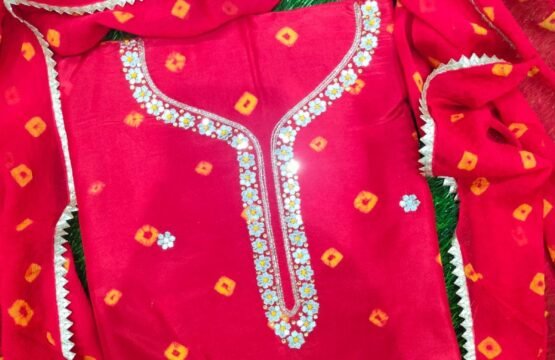 Women’s Bandhej Print Upada Silk unstitched Dress Material. Add style to your Daily Wear Collection with this Printed Dress Material Salwar Suit. 1Unstiched Salwar, 1 unstitched Top, 1 Dupatta. Top & Bottom Fabric: Upada Silk, Dupatta Fabric: Bandhej. You can wear this suit in different styles. You can wear in parties, marriage and other functions.