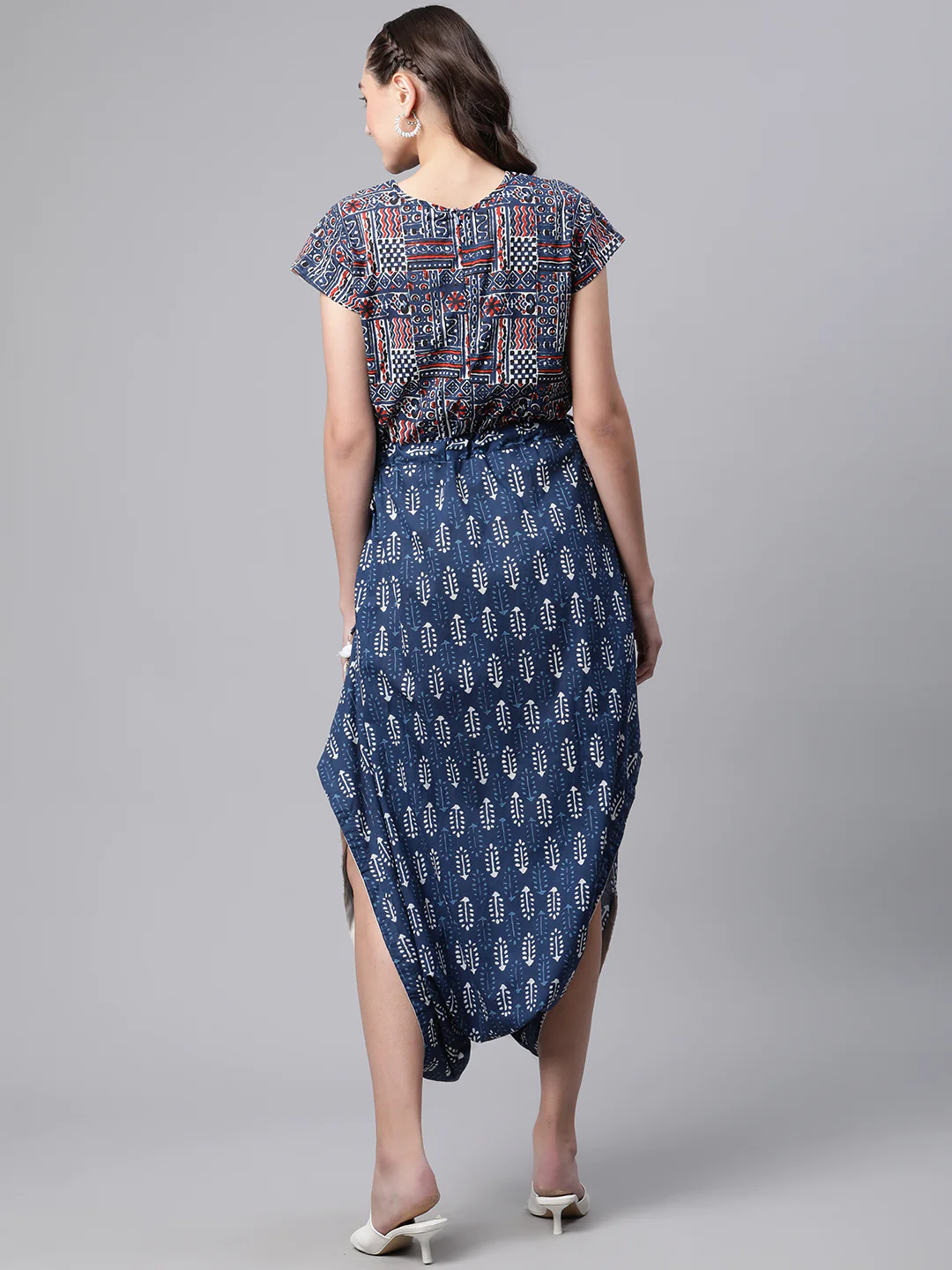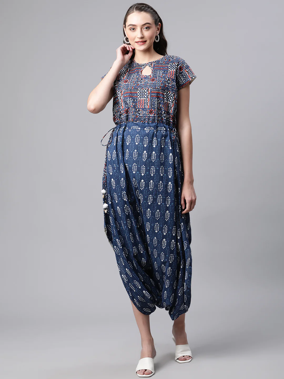 If You Are Looking For The Extra Feminine And Highly Stylized Jumpsuit For Yourself, Fashion Baazar Presents Its Unique Dhoti Style Cotton Jumpsuit In Soft Hand Block Printed Cotton With Rising Slits On Both Sides And Closed Neckline And Short Sleeves Is The Perfect Piece For Any Casual Day Outing Or Evening Party Wear. Pair It Up With Indigo Mojri, Dangles And A Jhola Style Bag For That Ravishing Look.