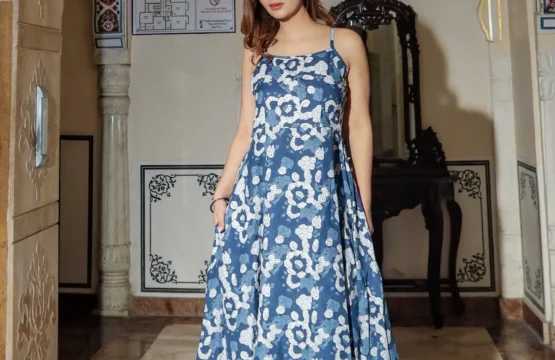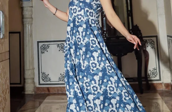 Wave Off The Summer Heat With Very Stylish, Fashion Baazar Long Dress In Indigo Print, Its Dressy, Summery And Very Chic , You Can Team It Up With Jacket Or Even Wear It On A Casual Evening Out, A Day night , Or Partying With Friend. Team It Up With Minimal Accessory For Perfect Styling.