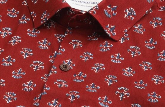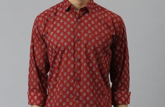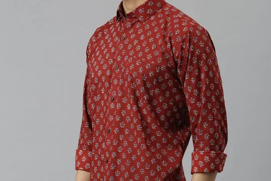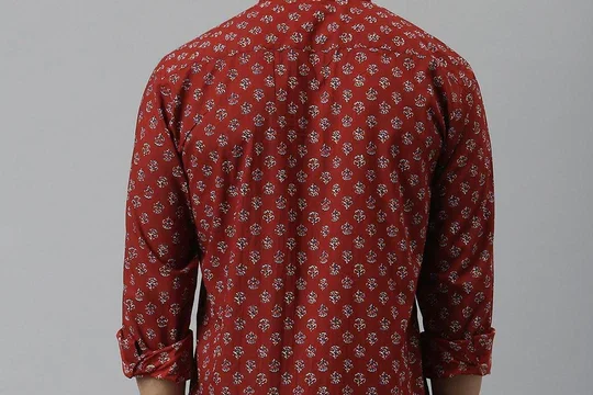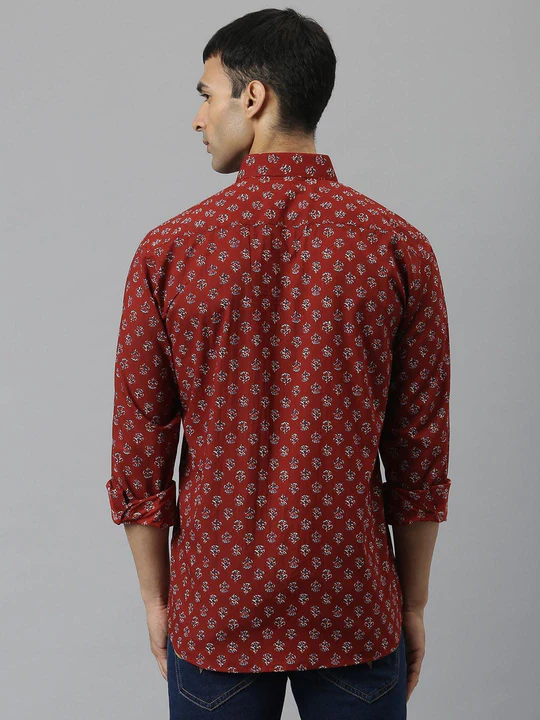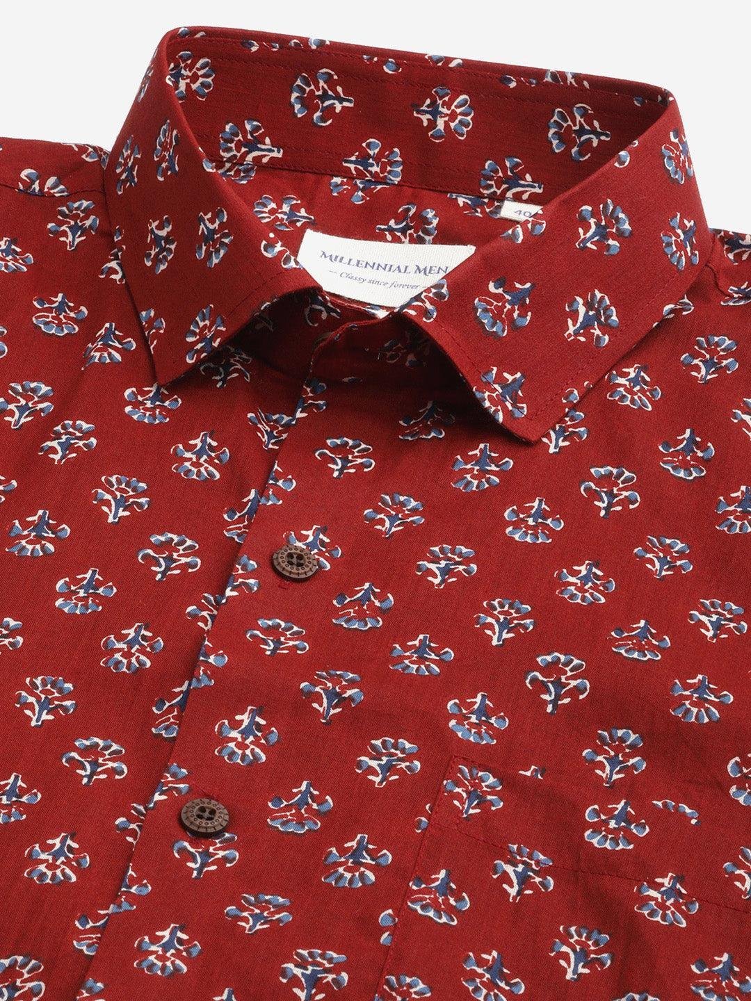 Maroon & Blue printed casual shirt, has a spread collar, Full sleeves, button placket, curved hem, and 1 patch pocket