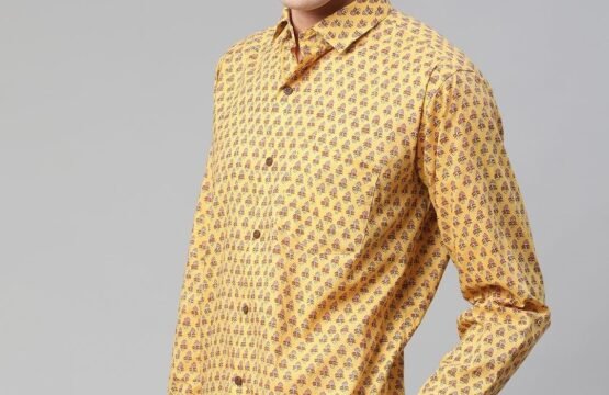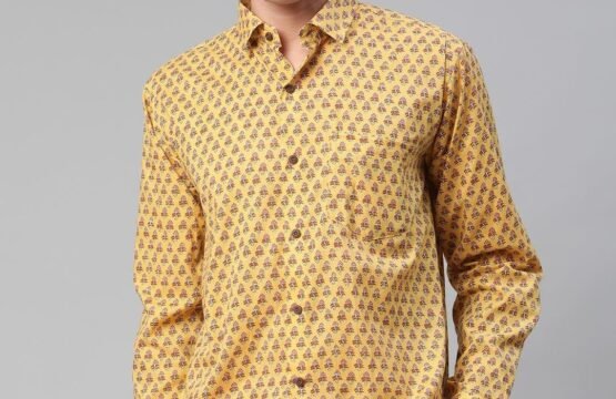 Mustard & Pink printed casual shirt, has a spread collar, Full sleeves, button placket, curved hem, and 1 patch pocket