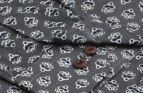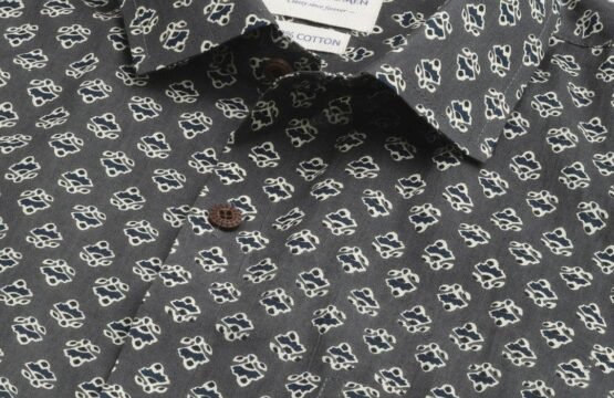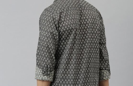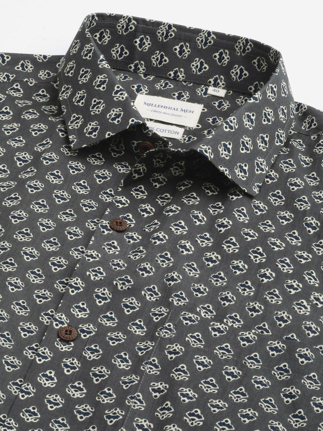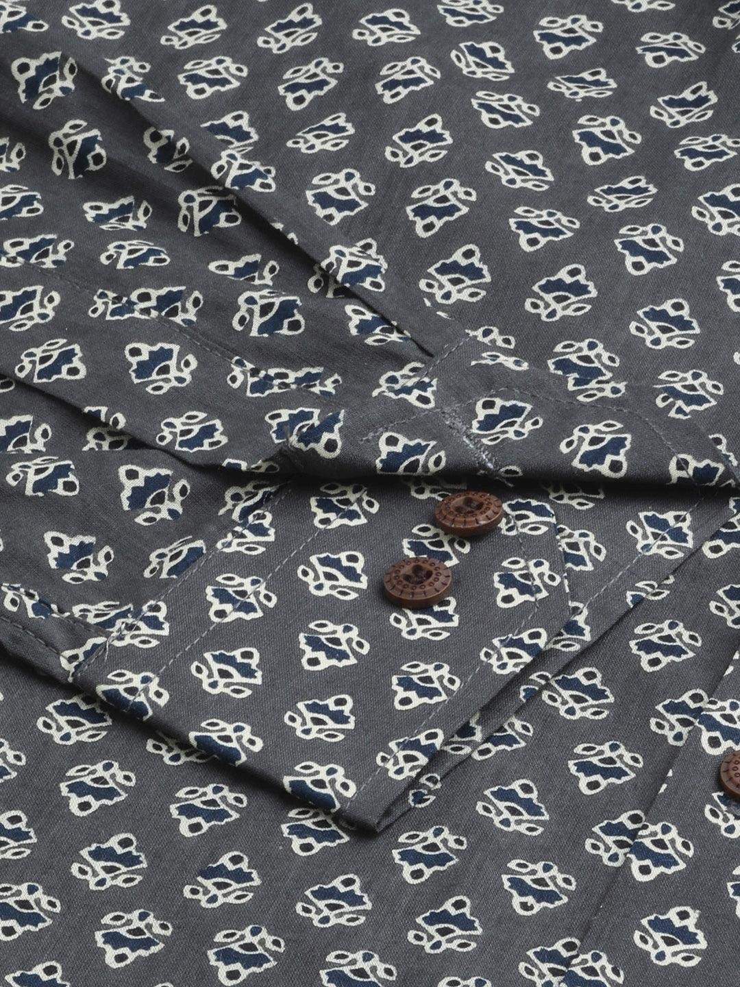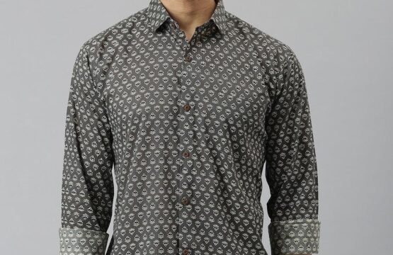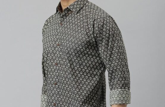 Olive & Cream printed casual shirt, has a spread collar, Full sleeves, button placket, curved hem, and 1 patch pocket