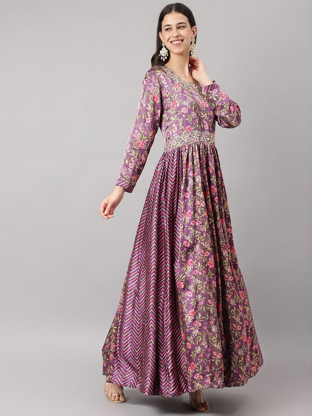 Keeping In Mind Need of Todays World for Perfect Style, Elegance and Comfort. Fashion Baazar Black Floral Printed Gaji Silk Flared Gown Gathering pattern Flared floor length Gown with dupatta .it has round neck coved with Embroidery zari work and Golden embroidery Sequined work in gown. Also used Cancan in Bottom Of gown to give Flared in gown For the Feminine Look and You Are Ready to Be in The Lime Light Of Every Party.