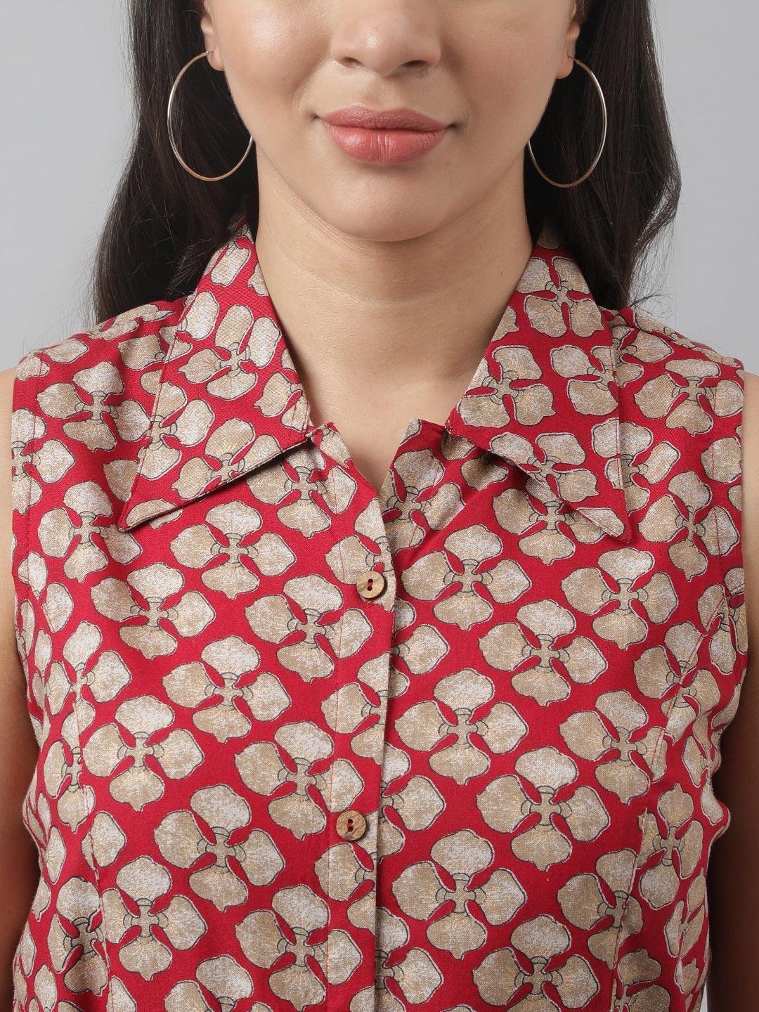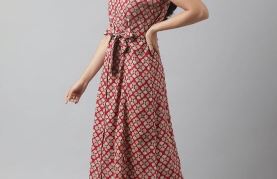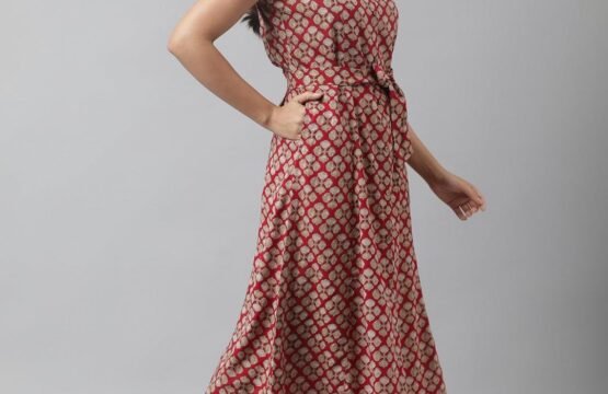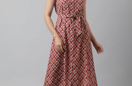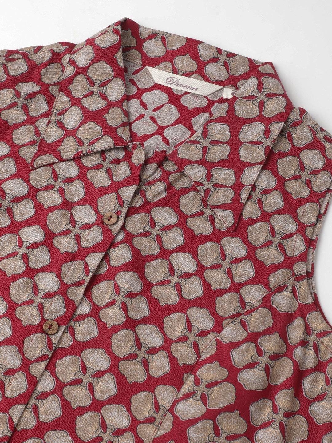Rayon Maroon A-Line Floral Printed Midi Dress